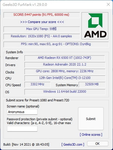 GPU FurnMark 溫度 MAX 59 - Hotspot 為 73 度