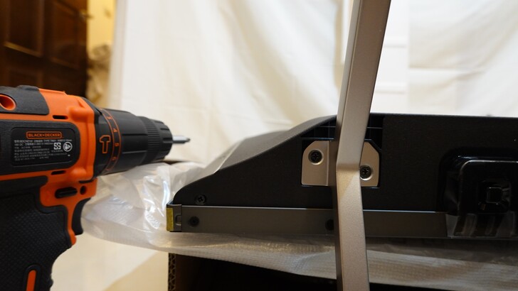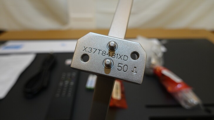 底座架上面有箭頭指示 可以直接與電視後方裝設底座區的箭頭對照 幫助安裝的便利性