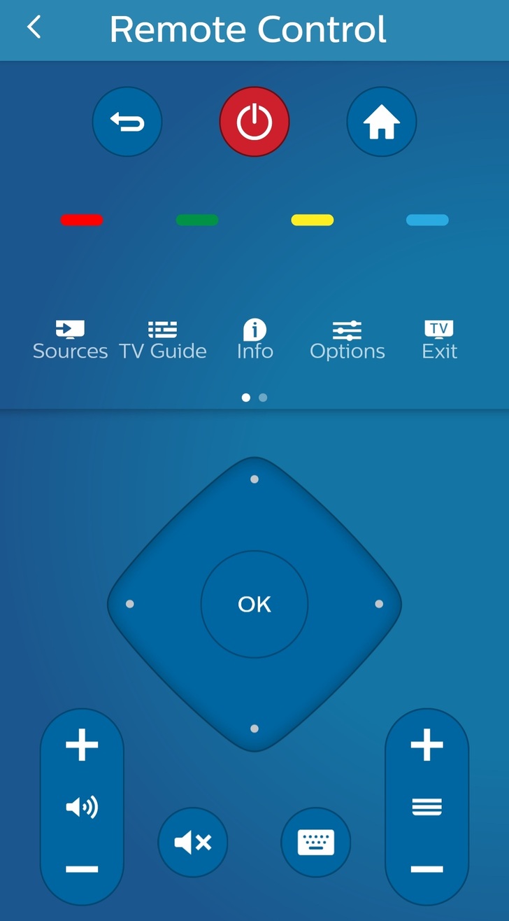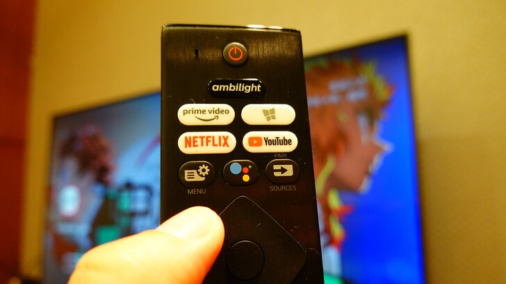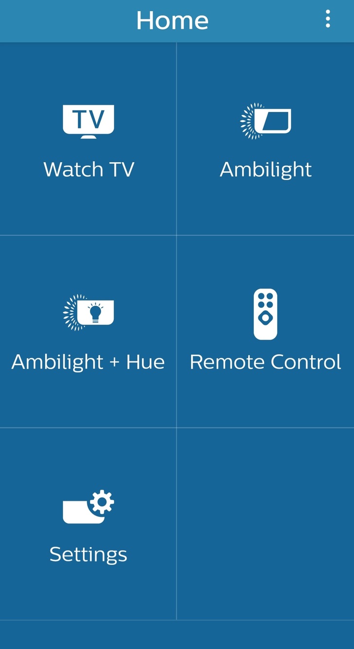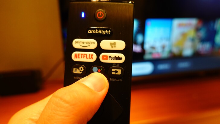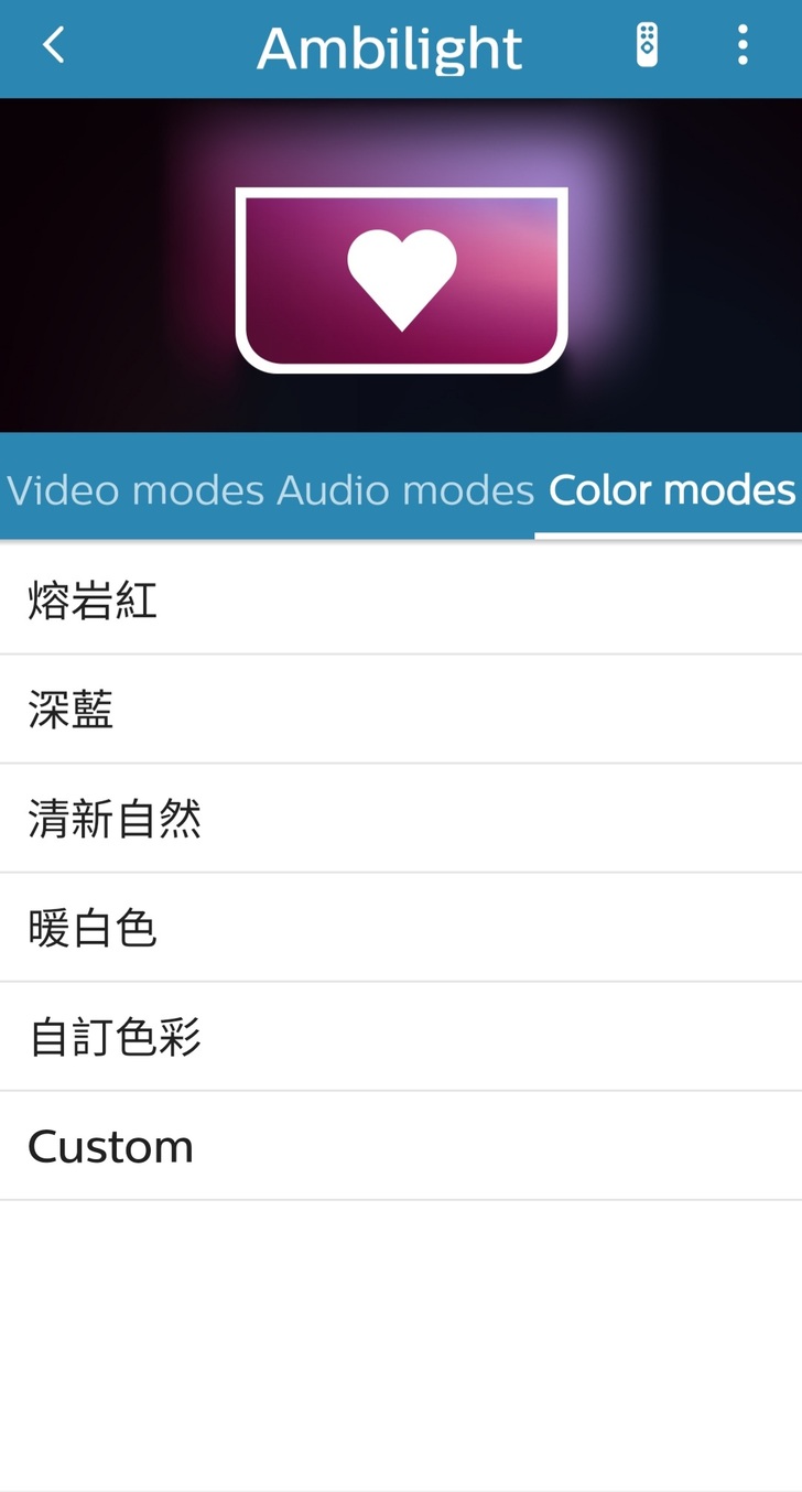 最上方是ambilight 燈光效果按鍵, 即便畫面沒有打開也可以單純點開欣賞燈光 當成客廳背景