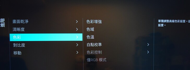 包含清晰度, 色彩, 對比度, 移動內容等等琳朗滿目的調整清單