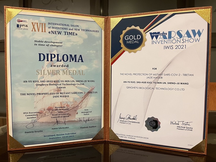 為了對抗變種新冠病毒,清合裕生技公司執行董事 林育民表示,研發團隊積極開發各種具抗病毒作用之草本成分,並設計成可加強抵抗變種新冠病毒感染之創新專利口罩「藏玉口罩」,使具有更高的保護力及安全性,此一研發成果,已獲得中華民國專利,並且在經濟部智慧財產局公告認定著名國際發明展『波蘭國際發明展』與『烏克蘭國際發明展』中,與來自美國、加拿大,俄羅斯、馬來西亞、巴西、俄羅斯、埃及、印度、韓國、以色列、泰國、中國等世界各國的發明產品同台競爭,經過激烈的競爭,藏玉口罩榮獲一金一銀兩項大獎的國際肯定,為台灣爭光。