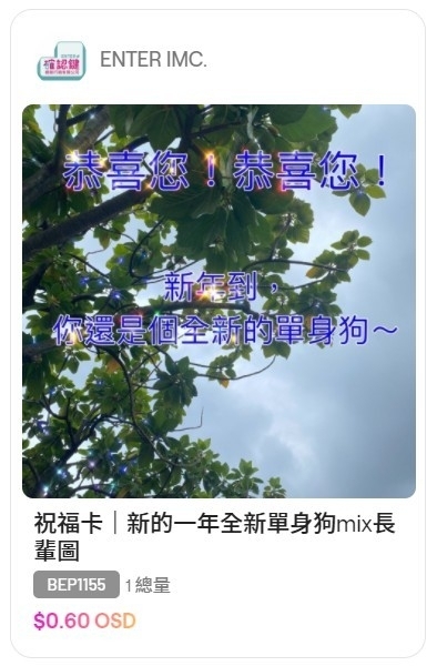 確認鍵也因應節慶上架NFT「長輩圖賀卡」,突發奇想製作了頗具玩味性質的祝賀、廢話及厭世語錄卡,並表示「希望能在NFT上帶來有趣且新穎的酷東西,每天在親戚群組中看到這些長輩圖,心想如果能做的有趣點或像美輪明宏桌布一樣有好運意義一定會很棒!」這波趣味長輩圖風潮可能會在NFT再掀起熱潮。