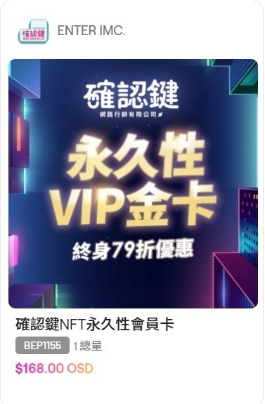 ▲確認鍵也推出NFT「VIP金卡」,廣邀各大產業業者合作。(圖/確認鍵網路行銷有限公司提供)