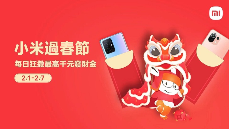 為歡慶即將到來的農曆春節假期,小米台灣於今1月27日宣布將於2月1日至2月7日止,舉辦「小米過春節」活動,從大年初一到初七優惠不間斷,每日狂撒最高千元現金券紅包,帶給用戶滿滿的「虎哩福氣」,用最好的優惠幫你把紅包存起來!