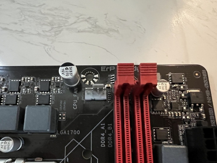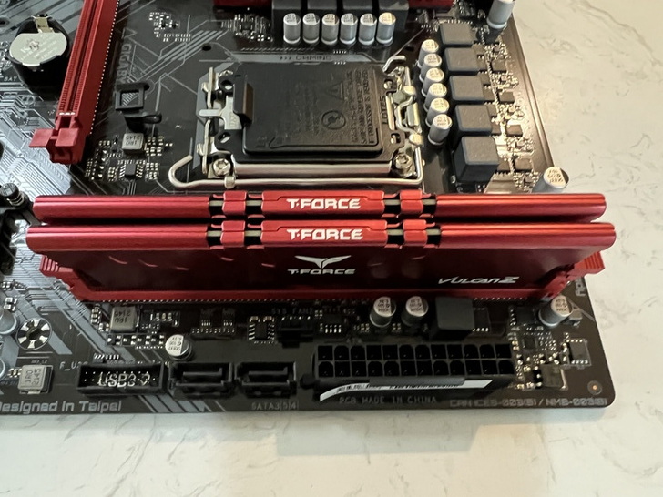 記憶體插槽紅色搭配紅色馬甲散熱片很匹配