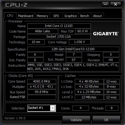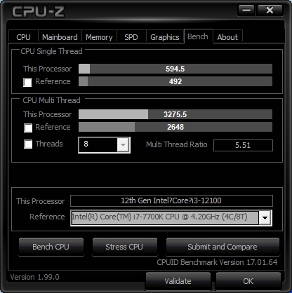 CPU-Z i3 12100 性能已經完全打掉 7700K
