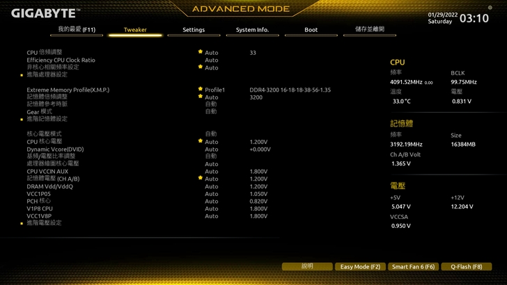 不知不覺技嘉的BIOS介面也有悄悄改變在進步
