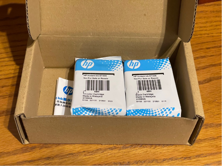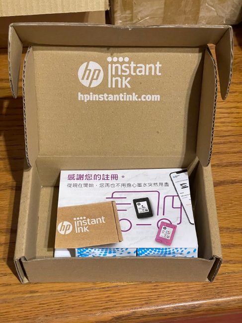 整個挑戰最重要的事情,除了印表機本身以外,就是訂閱制的墨水.直接在線上註冊訂閱HP Instant Ink,馬上就有兩個月試用的服務,也太棒了吧!!申請後很快就收到了HP寄來的包裹,馬上拆開來看看裡面有什麼內容