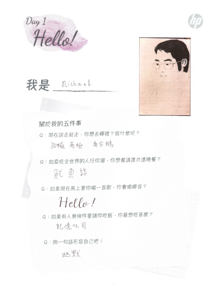 首先是第一天的挑戰,第一天的挑戰非常簡單,用左手寫下自己的名字,然後回答幾個問題.挑戰的過程中我偷偷放入了小秘密,不知道有沒有人看得出來