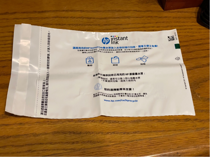 接下來是回收墨水的墨水袋,之前以為替換下來的墨水就要直接丟掉了。原來可以裝進這個袋子,拿去小七回收就好了。感覺蠻環保的