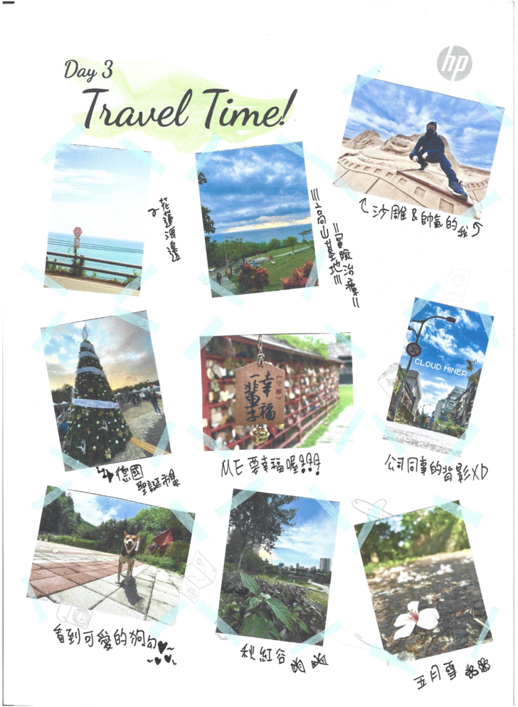 第三天的挑戰,是旅遊時間!!這個挑戰真的很困難,因為照片太多了不知道怎麼挑,然後神秘人物已經偷偷的在這些照片裡面出現了,不過我想一定沒有人發現,因為印出來的照片有點太小了,猜猜看到底在哪一張照片出現的呢?