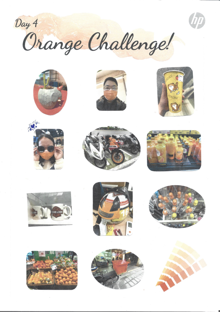 第四天的挑戰,早上看到信發現要在生活中尋找橘色的東西,這……等我回家不知道有沒有時間找,所以在公司內就開始找了,到了中午還沒找到足夠的數量,午休時間吃完飯也就在公司附近到處找.在找的過程中發現,其實橘色的東西還不少,只是平常都沒有注意到,這也讓我意識到原來生活中有許多我沒注意到的細節,感覺這個挑戰讓我對生活也有更多的體會!!神秘人物版面越來越大了,好像還是沒人發現,又擔心被發現又希望別人發現,我情緒好複雜~