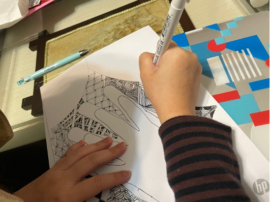附上禪繞畫挑戰的幕後花絮,不知道有多少人看出上面畫的兩隻手是我跟神秘人物重疊的手呢?