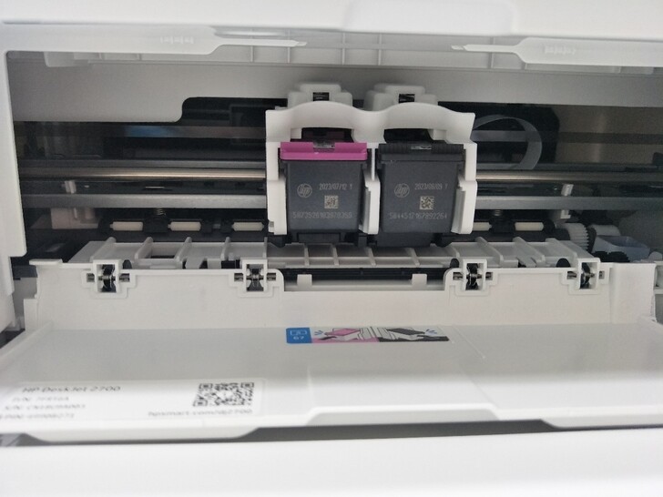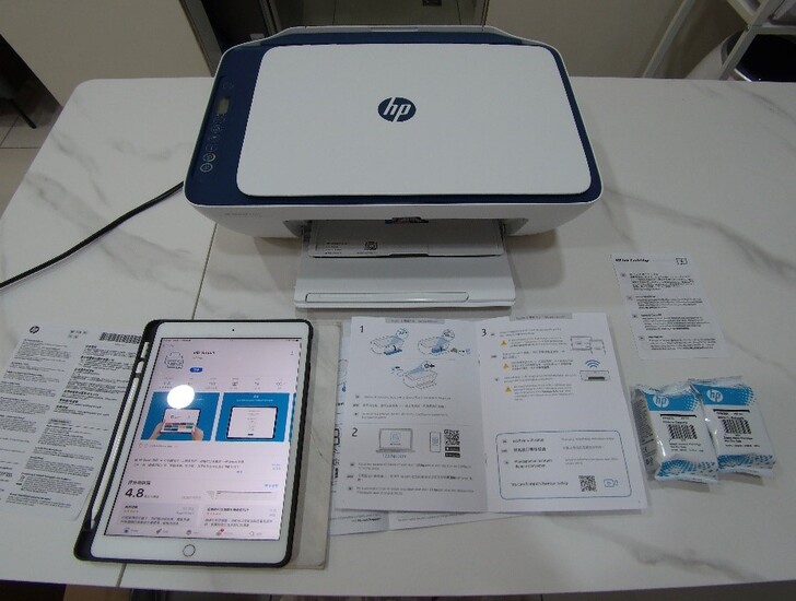 開箱後發現裡面除了機器本身,還付了兩顆小巧可愛的墨水匣(一顆彩色,一顆黑白),機器的設定安裝十分簡單,只需要把保護機器的藍色膠帶移除,裝上墨水匣,下載HP SMART APP(手機/平板),或用電腦下載HP SMART應用程式,就能輕鬆設定機器囉!