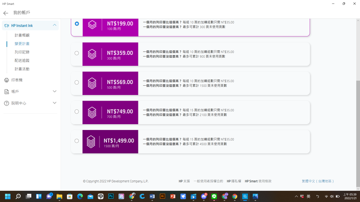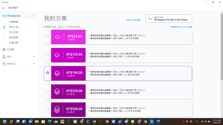 在設定印表機的同時,也需要設定最重要的部分—訂閱墨水訂購式服務,在訂閱計畫中選擇最適合自己的列印方案吧!這次小狸選擇體驗的是一個月可以列印100張,199元的方案!因為小狸覺得這個方案最適合我,換算下來彩色列印一張才只要不到2元!真的是非常划算呢!大家也可以依照自己的需求訂閱喔!