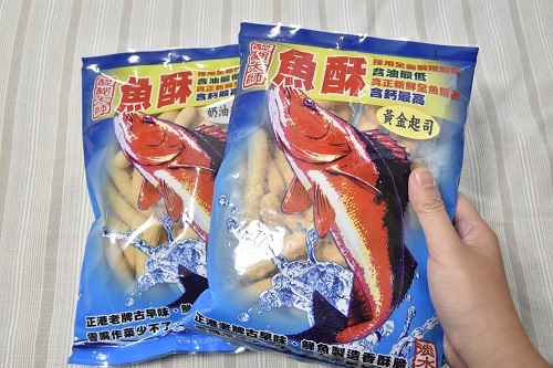 分別是奶油香蒜跟黃金起司口味魚酥。