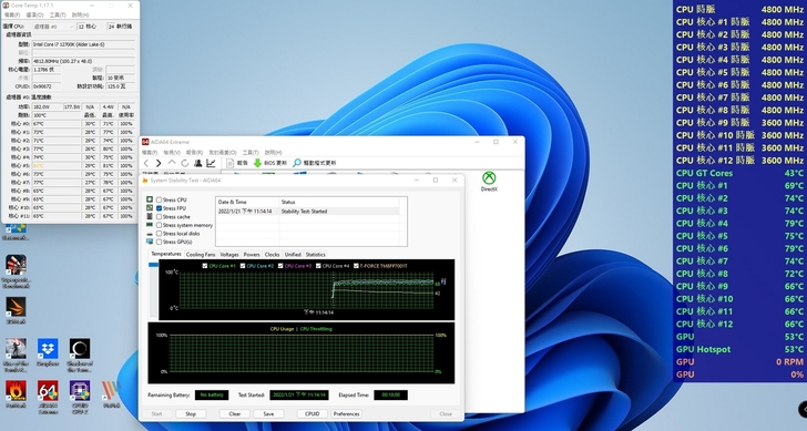 實測 12700K 4.8 P CORE 3.6 E CORE