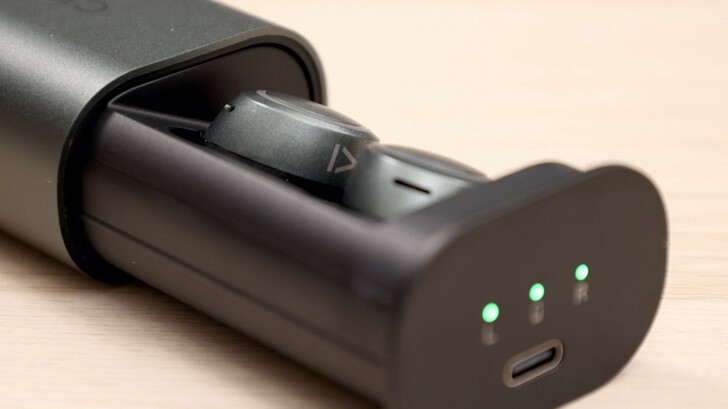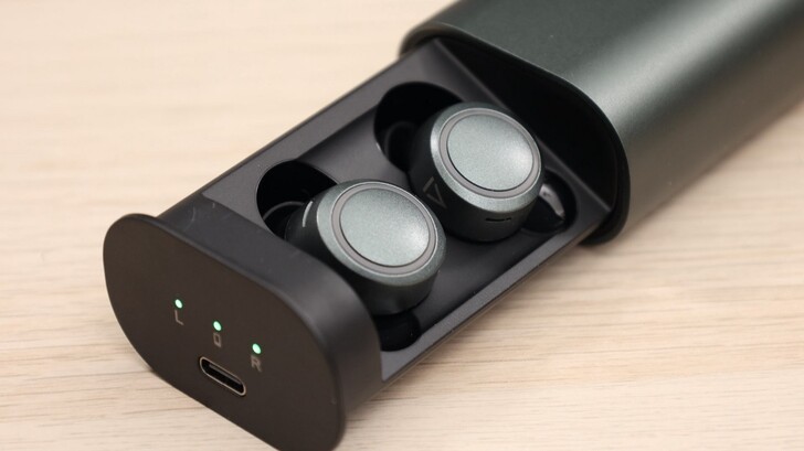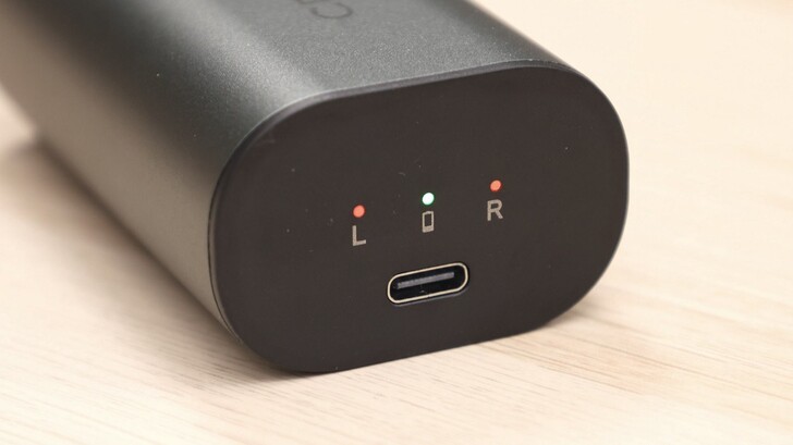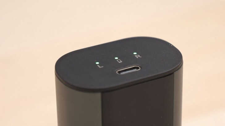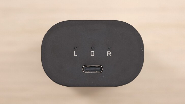頂部有左右耳機以及充電倉的電源指示,獨立分開的指示燈在使用上就更加直覺。下方還有 USB-C 充電孔,整體外觀設計形成對稱,相當好看。