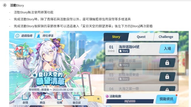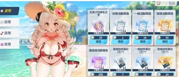 除了泳裝學生之外,這次也推出了各種獎勵的兌換活動,正好符合「夏日天空的願望清單」這個名稱