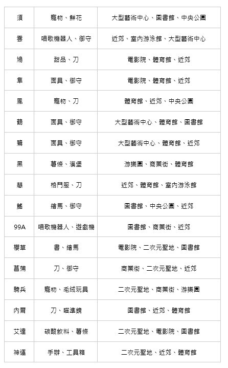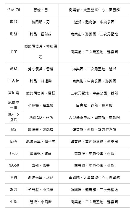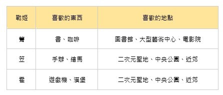 基本上約會的地點滿多選擇的,而每個戰姬喜歡的地點也不同,選擇戰姬喜歡的約會地點,在約會評語中除了獲得讚賞外,好感度也比較快提升。
