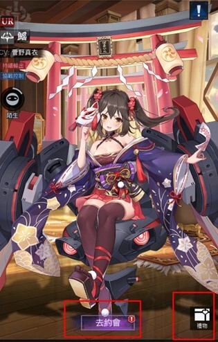 選擇好要約會的戰姬可以看到這個介面,其中送禮也可以在這頁面做處理。