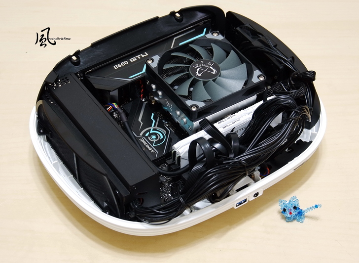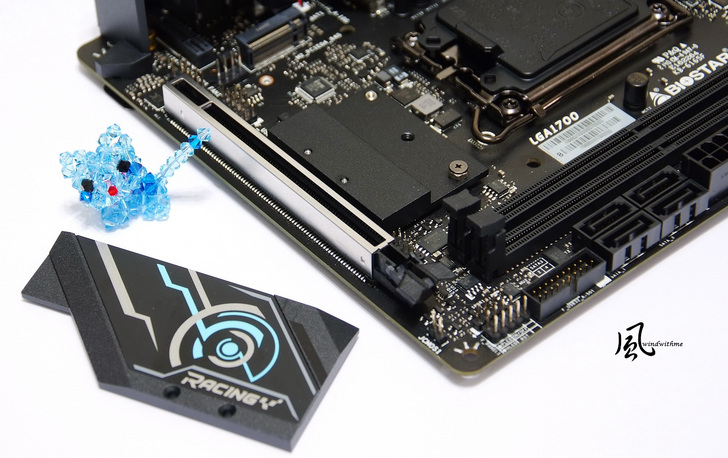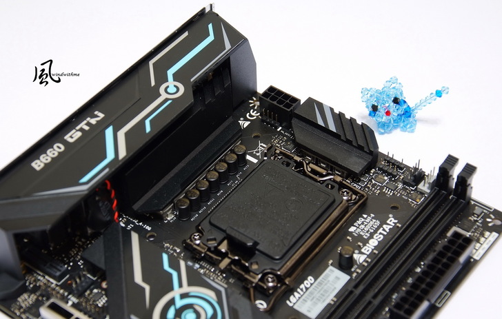 12代共有Z690、B660、H610等3種支援晶片組,目前ITX主機板不算多,也有品牌推出DDR5版本,雖對未來容量擴充性有利,但裝機成本會提高許多,本篇採用BIOSTAR推出的RACING B660GTN,屬於DDR4規格版本,將第一張照片零組件安裝完成,DDR4採用Crucial Ballistix白色款。