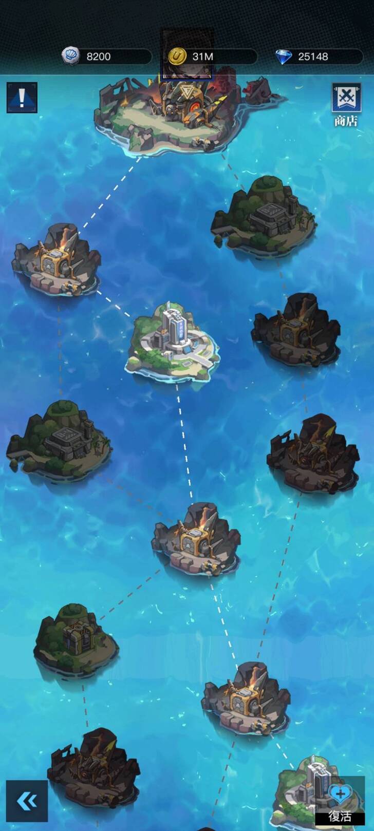 每個島嶼都有不同的小怪或事件等著,目標走到最後的島嶼拿取獎勵,可以用探索幣換取獎勵
