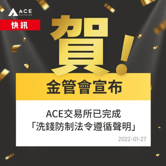 對此,台灣金管會去年起正式實施「虛擬通貨平台及交易業務事業防制洗錢及打擊資恐辦法」,並公佈「洗錢防制法令遵循聲明」的虛擬通貨平台業者名單,ACE王牌集團(ACE Exchange)為首批已完成聲明程序的業者,今年更聘請前刑事警察局副局長莊定凱擔任合規官,負責監管合規工作,讓ACE落實反洗錢防制政策做到最好,並以保護用戶利益為核心使命,安全及合規性再升級!