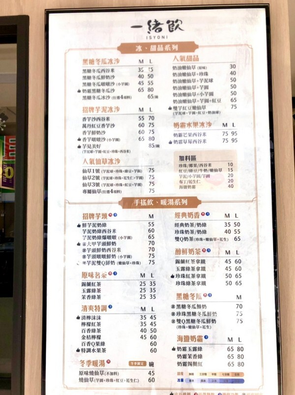 他們的菜單配色真的很有質感又淺顯易懂!還有分甜品跟手搖飲暖湯系列~