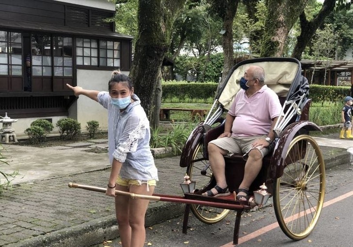 「文創咖美食館」外觀是一棟白色建築物,充滿文青氣息,店門口還擺放了一台真的可以拉的「人力拉車」,因應日據時代大溪有人力拉車歷史,來用餐時也能跟人力拉車合影,重現日治時期的風華景象。相關資訊請上「文創咖美食館」臉書粉絲專頁查詢。