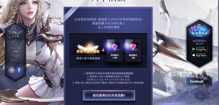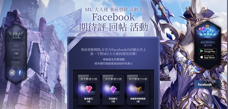 在FB活動文章內留下對奇蹟MU:大天使的各種期待期望留言,達到一定的留言數量,所有玩家皆可獲得獎勵,我覺得200個超少的,應該蠻容易就達到的,千萬別錯過這個獎勵啊。