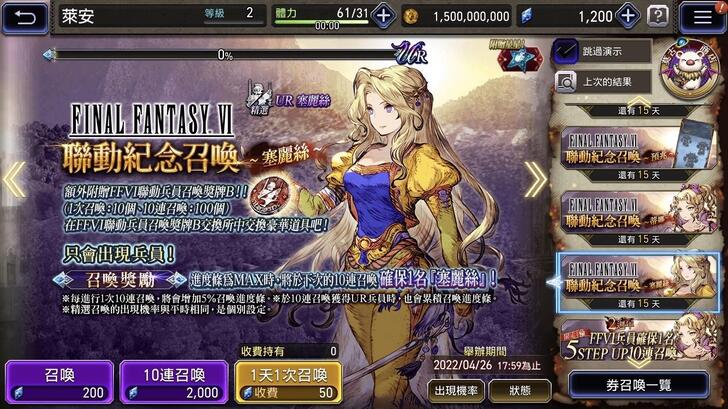 另外,貝利斯本人也不侷限於純屬性隊伍,在任何隊伍當中都能放上他,無論是新手推主線或是競技場都時常能見到他的身影,搭配著現在二周年與FFVI的聯動的塞利斯也能夠讓和他有相當融洽的搭配,也因為這些特性讓他成為現在最推薦的首抽兵員,因此這邊也分享若現在看到文章該如何做首抽。