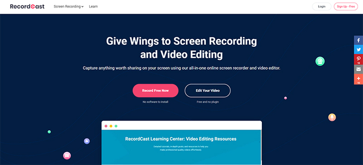 免費版能體驗到的功能越豐富,在錄影時限和個數的限制就會越嚴格,像RecordCast就只提供12個影片檔與每一影片五分鐘時長的限制,並且也只有480p的畫質能做運用。