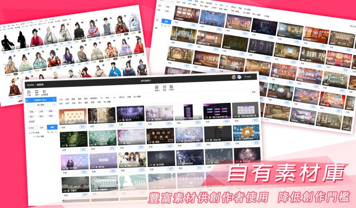 編輯器共有『事件流模式』、『代碼模式』等兩種操作方式,並提供豐富的素材庫供創作者使用,讓用戶可以更輕鬆地進行創作。