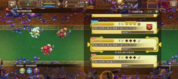 遊戲當中也有很多可以拿來強化自身的關卡(副本的概念),如果發現主線的王推不太動記得要打來強化一下呀!