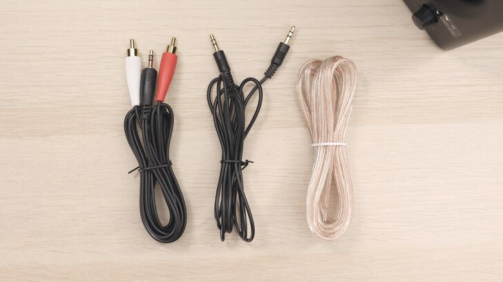 隨附的線材包括 3.5mm to RCA、3.5mm to 3.5mm、喇叭連接線。