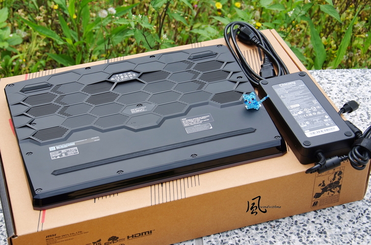 D面採用大面積蜂巢式散熱孔搭配特殊外型提升散熱能力與外型質感,下方為Mystic Light bar全景炫光燈效區域,最多可達1680萬色彩,變壓器搭配Chicony 280W,重量約866克,若加上電源線共為1019克。
