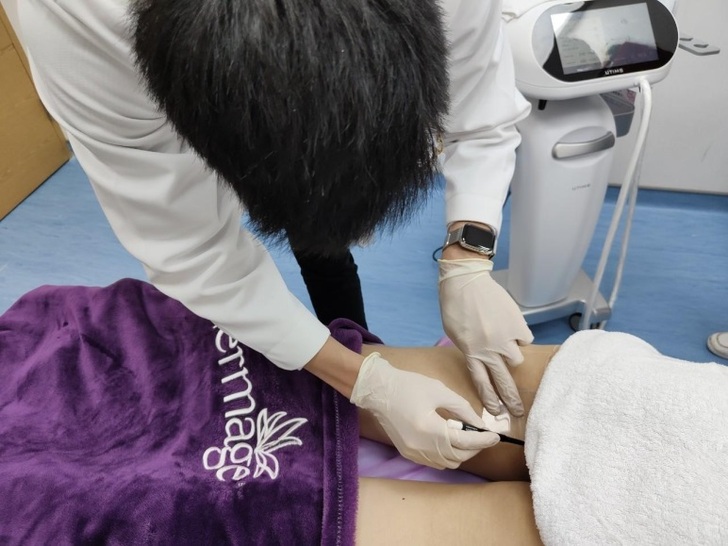 術後大腿基本上就是微微泛紅 不會痛 就只有稍早有施作療程的感覺而已