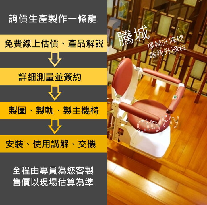 便民服務 – 專員服務,提供線上諮詢報價,全程客製化服務,維修保固,堪稱市售最經濟、耐用之樓梯升降椅。