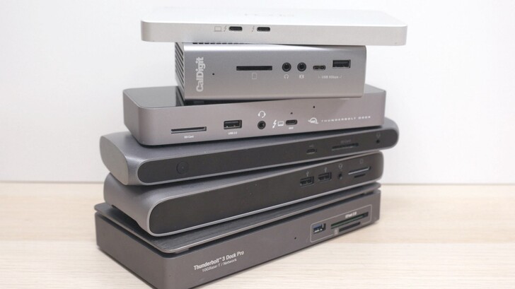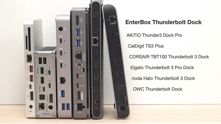 Thunderbolt 是有點貴的東西,這個貴是包含我自己的消費經驗和大眾觀感。像手上這幾台,每台價格都是一萬上下,這六台粗算大概就六萬了。也因為有點貴,中文開箱評測這類產品的影片、文章都很少,全世界少有內容一次比較這麼多台 Thunderbolt Dock。因此我覺得這樣的內容很珍貴,一直很想用中文介紹這些內容,並且分享自己的觀察。