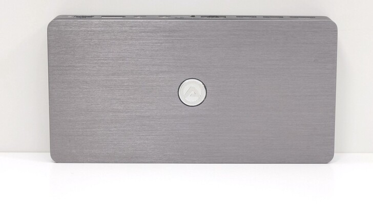 每次拿 AKiTiO 這台,我都在想他是不是高科技磚頭,這尺寸真的很像。他頂面是髮絲紋處理,紋路比較深的,但通常我喜歡淺一點的做法。手上這些 Dock 在使用時,機身外殼都有一定溫度,我就不敢將充電的手機、記憶卡、SSD 放在上面。但是 AKiTiO 如果有開風扇的話,屋頂這片是涼的,整台機器溫度也明顯下降。而相較之前我在評測影片當中有提到,我覺得形容他就很像一個精緻的悍馬車。所以對我來說我喜歡他精緻的部分,但是我比較不喜歡他作為一個悍馬車的形象。