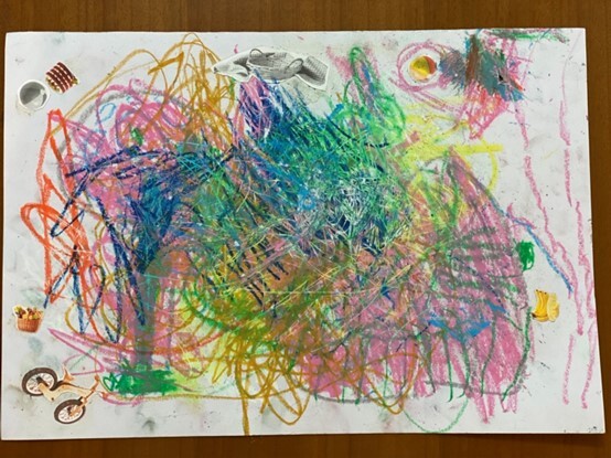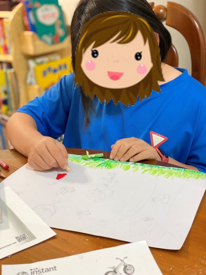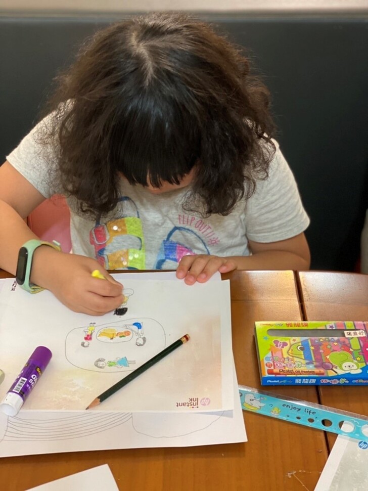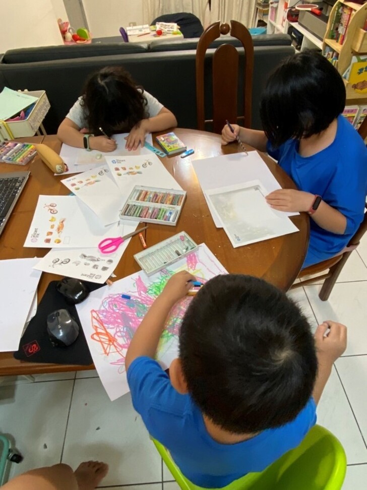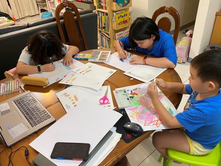 4歲的孩子能專注跟姐姐們塗塗塗媽媽已知足