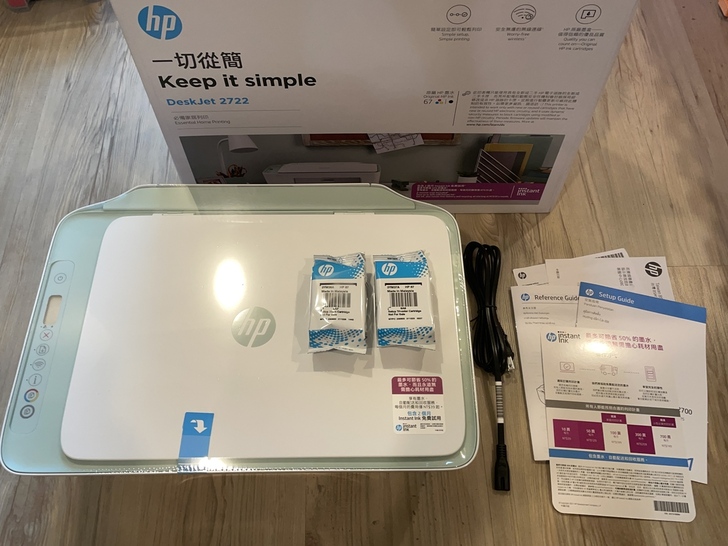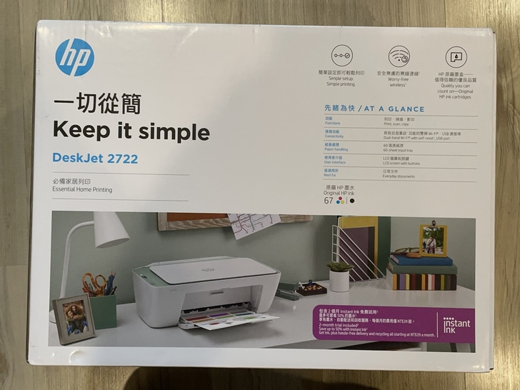 型號HP DeskJet 2722,兼具列印、影印、掃描功能,支援WIFI無線列印。