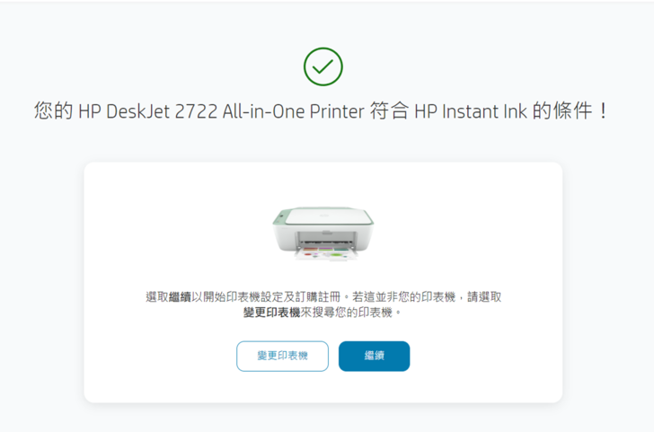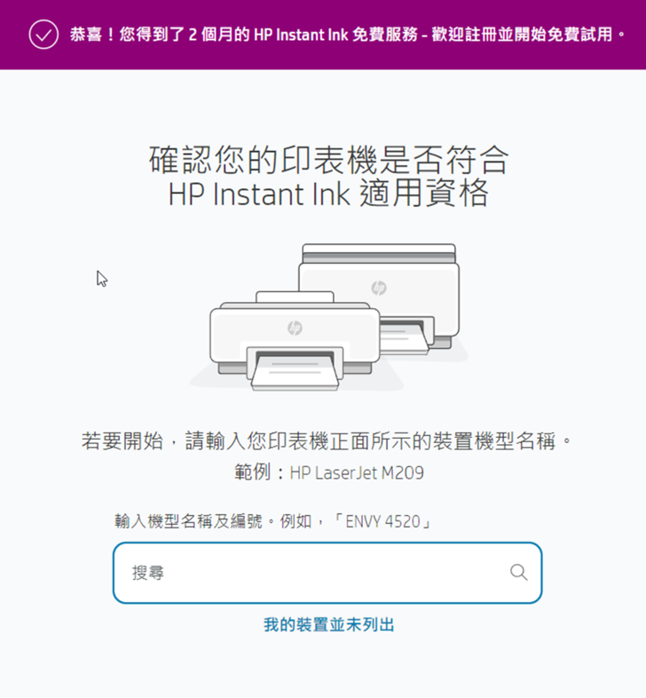 要先確認機型是否符合HP Instant Ink適用資格,所以需要輸入印表機型號。