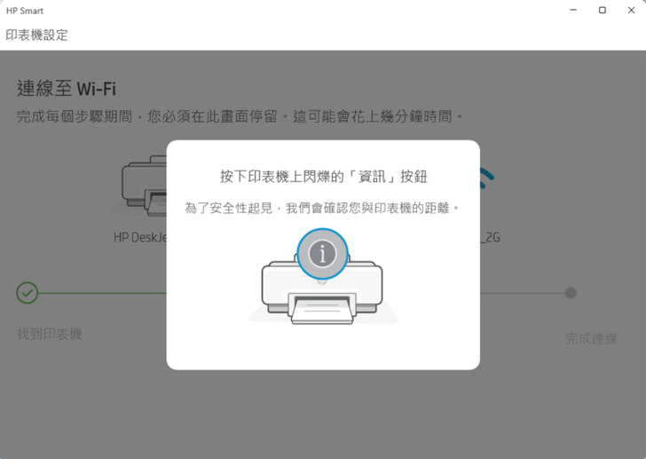 按下印表機上的「i」資訊按鈕以確認印表機距離。