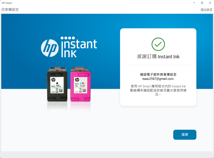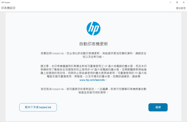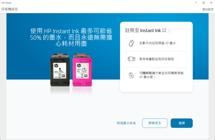 接下來要註冊Instant Ink,就可以享受墨水自動寄到家的服務。