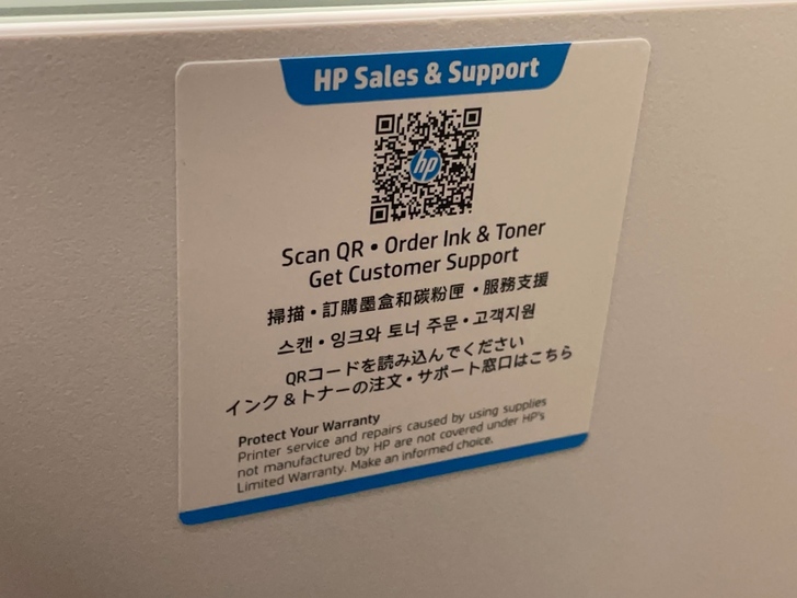 機身旁邊有一個QR Code,如果沒有訂購墨水寄送服務的話,也可以從這裡自行訂購,或是獲得其他服務支援。