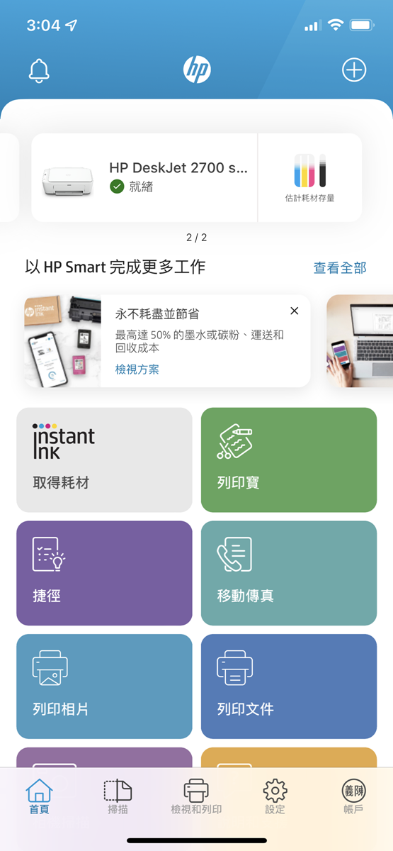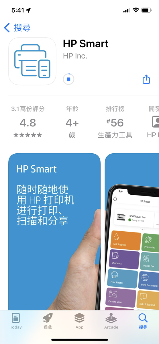用手機安裝HP Smart軟體,iOS或是Android系統都均可安裝。以下示範為iOS版本。