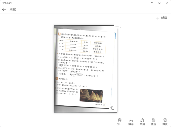 電子書的部分可以直接列印,如果是有帶回家的作業本當然就不用印了,寫好之後直接拍照上傳就可以。不過因為2722也有掃描功能,我就想說試看看掃描效果是否會比手機拍照好。掃描功能要通過HP Smart來進行。