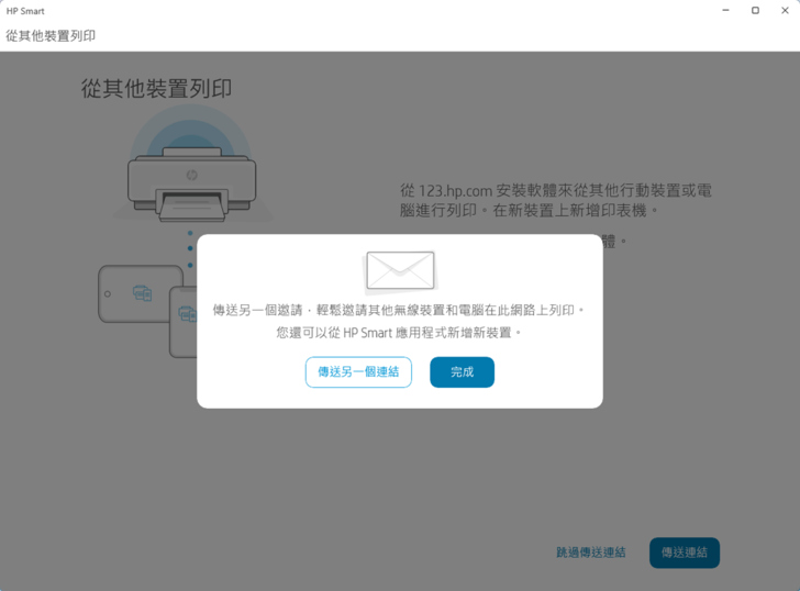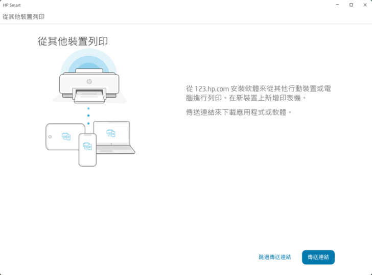 可以連送連結讓其他裝置利用網路列印,也可以從HP Smart APP來新增裝置,不過要注意一點的是,必須在同一個WIFI網路空間中才能無線列印,人在辦公室是無法使用家中印表機列印的。